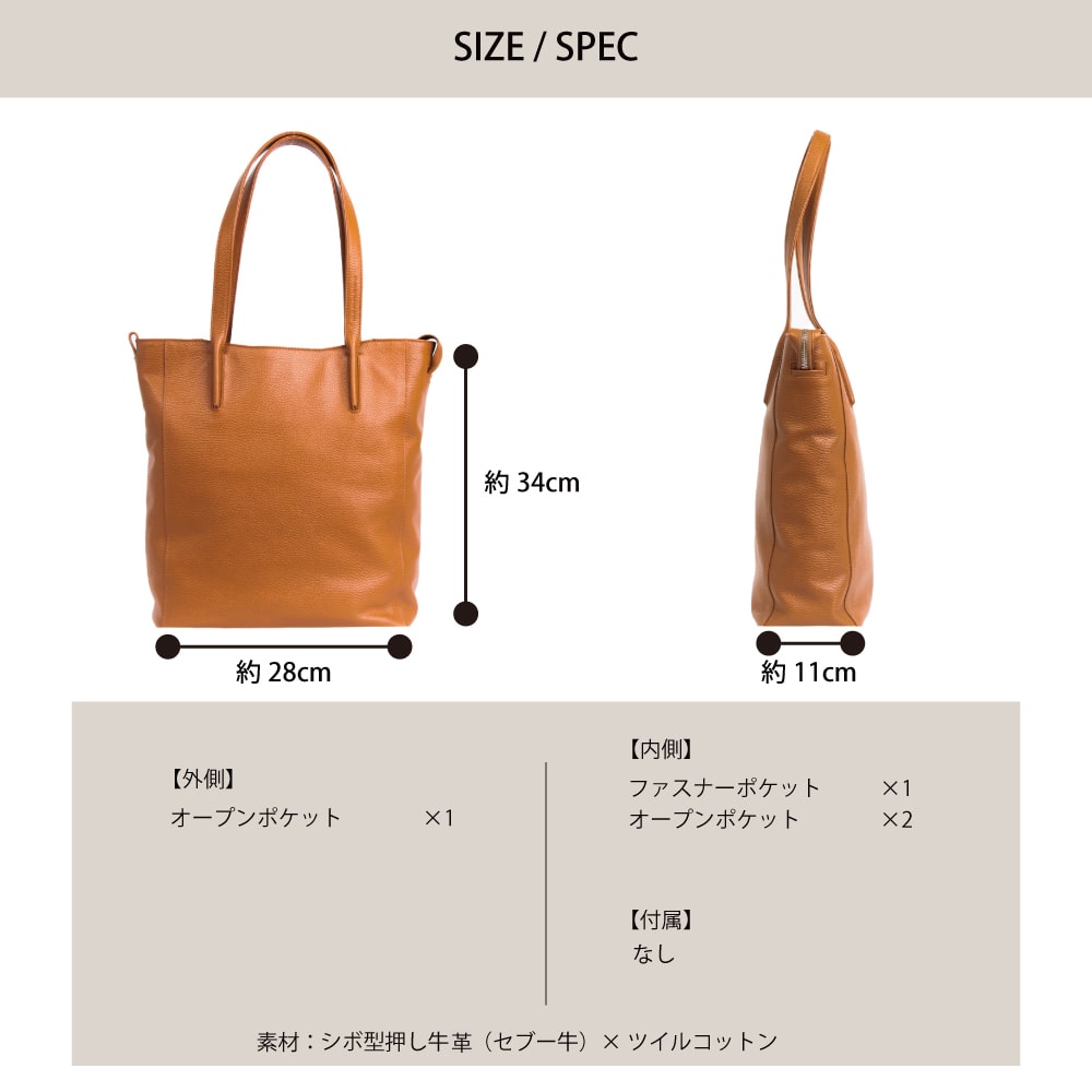 シボ型押しの牛革を贅沢に使用した上品なトートバッグ。