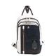 3色のフェイクレザーを組み合わせた高級感のあるデザインが印象的。