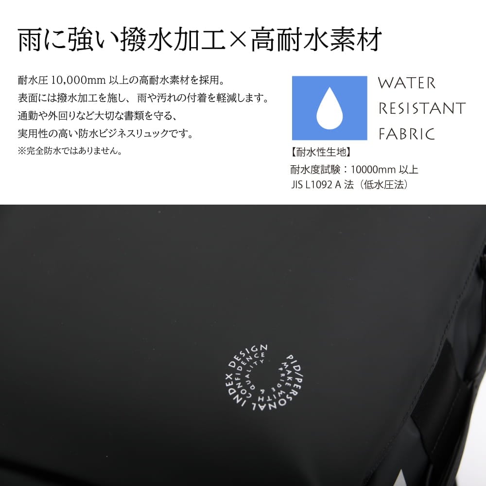 「おもてなしセレクション2025」最高金賞を受賞した旧モデルの2Wayビジネスリュック 26L(PAK301)の完成された設計を受け継ぎ、耐水圧10,000mm以上の高耐水ウォータープルーフ素材でアップデート。表面には撥水加工を施し、雨や汚れの付着を防ぎます。3層構造の生地がほどよい張り感と耐久性を両立し、通勤や出張などのビジネスシーンでも安心して使える仕様に仕上げました。