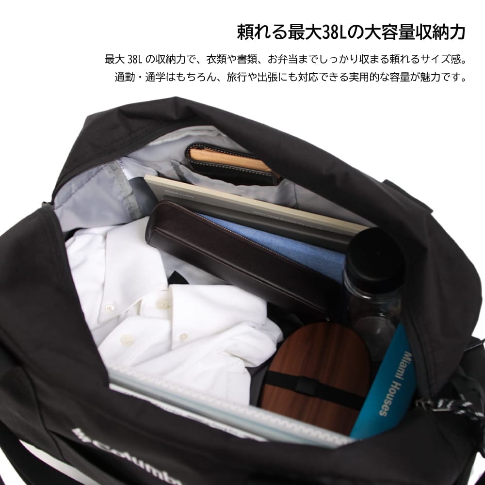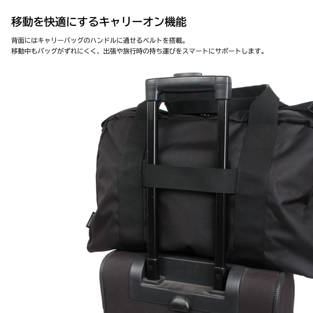 最大38Lの大容量を備えた、通勤・通学から旅行まで対応できる多機能ボストンバッグ。衣類や書類、PC、日常の必需品までしっかり収納できる頼れるサイズ感が魅力です。ショルダーベルトは着脱可能で、手持ち・肩掛けとシーンに合わせた使い分けが可能。背面にはキャリーバッグのハンドルに通せるキャリーオン対応ベルトを搭載し、移動時もスマートに持ち運べます。日常使いから出張・旅行まで幅広く活躍する実用性の高いアイテムです。